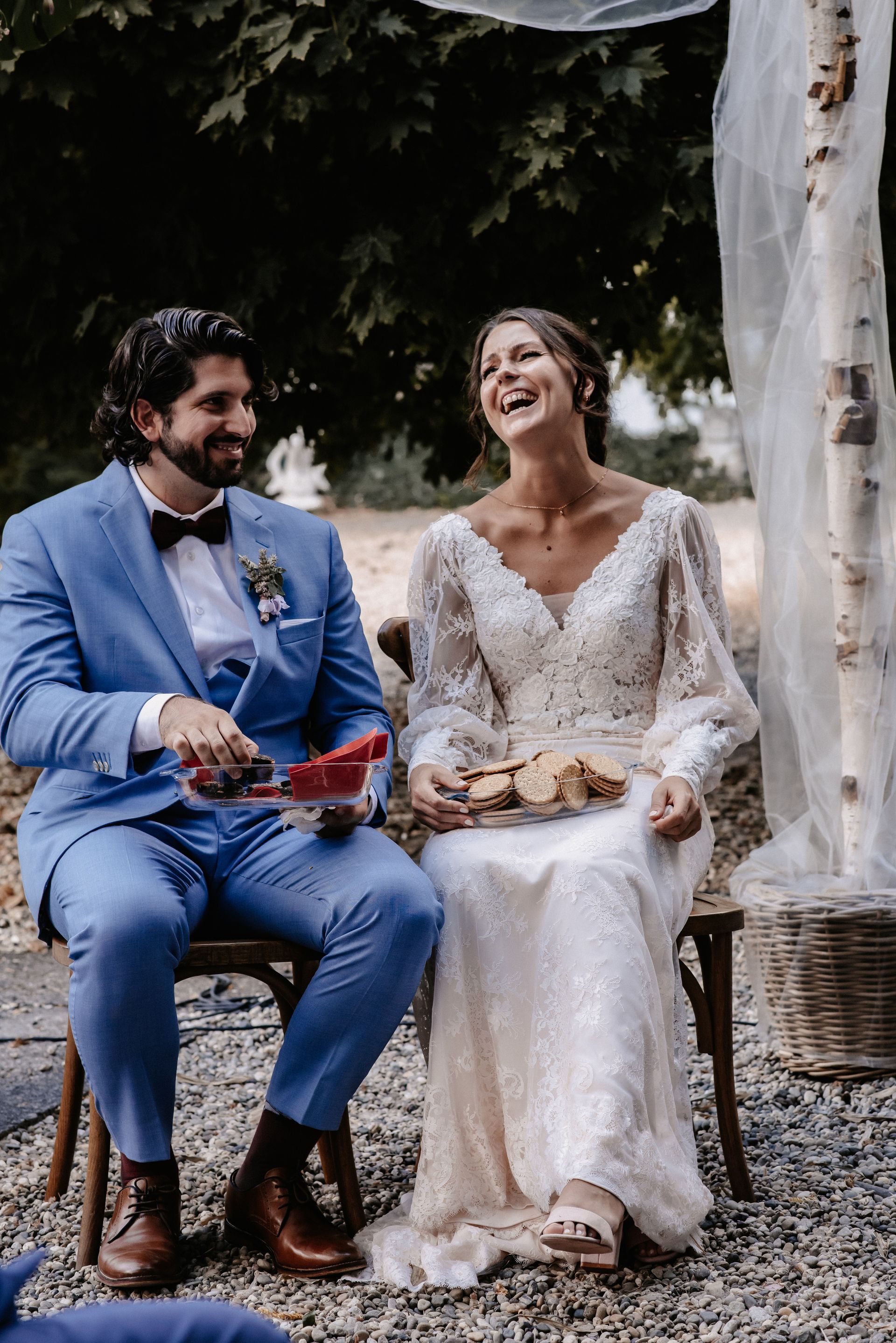 Vergesst nicht, dass auch ihr als Brautpaar eine aktive Rolle in eurer Trauung spielen könnt. Ihr müsst nicht nur zusehen, sondern könnt euch jederzeit einbringen und die Zeremonie mitgestalten. Dabei geht es nicht nur darum, ein Gelübde zu sprechen. Es ist eure Trauung und ihr dürft kommentieren, Scherze machen, lachen, dazwischen reden oder eure Gäste animieren – denn eure persönliche Note macht die Trauung authentisch und unverwechselbar.